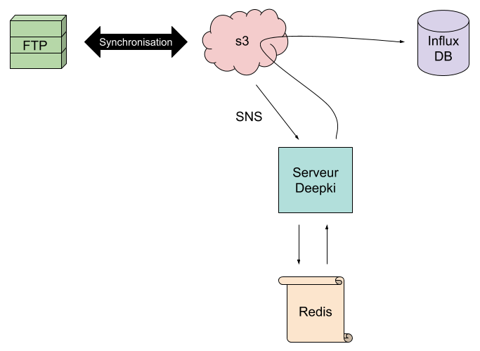 - Cette fois-ci, le dépôt sur s3 envoie un message SNS non pas pour déclencher une lambda mais pour appeler l’application de Deepki dédiée à la collecte.